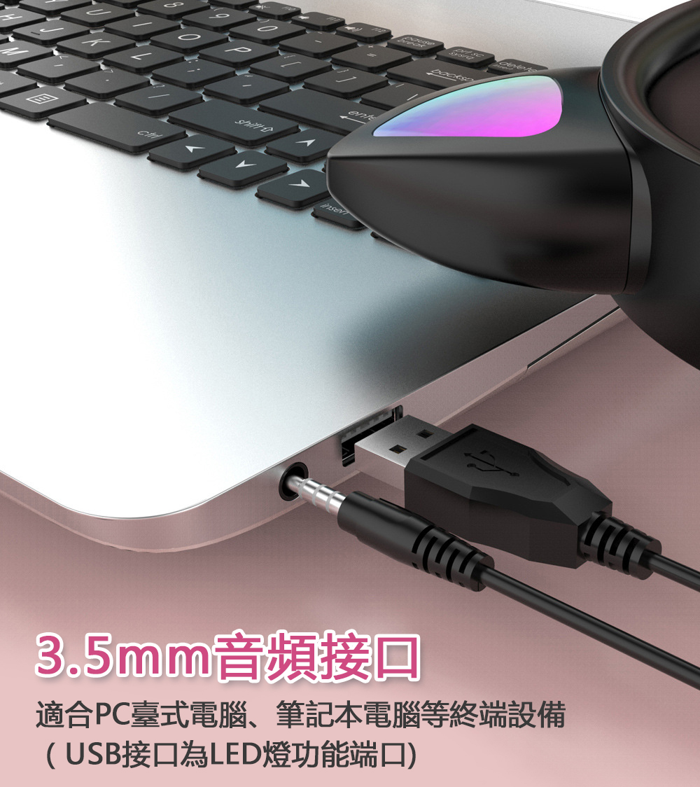 高性能耳機與萌寵外觀結合。 獨特萌系外觀,搭配LED炫光系統,惹人愛。 高性能驅動單元,帶來電影級的音質體驗。 通過工程師精准調校的喇叭單元,搭載HI-FI級銅芯線材進行信號傳輸,打造出色音質