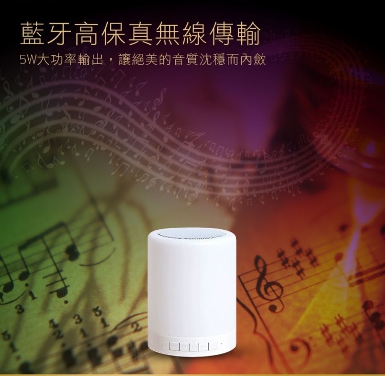 藍牙喇叭,手提照明,觸控夜燈,多彩環境,特殊ABS半透明材質,讓光源隱約散發柔和的氛圍,溫和不刺眼,藍牙高保真無線傳輸,智能動感節奏燈光模式。