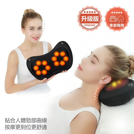升級版車家兩用按摩枕,配兩個電源,一個家用,一個車用,仿真人按摩,舒緩身心壓力,模式多樣,隨心所選,多部位按摩,緩解全身,一鍵智能啟動,雙鍵多能,三速可調。